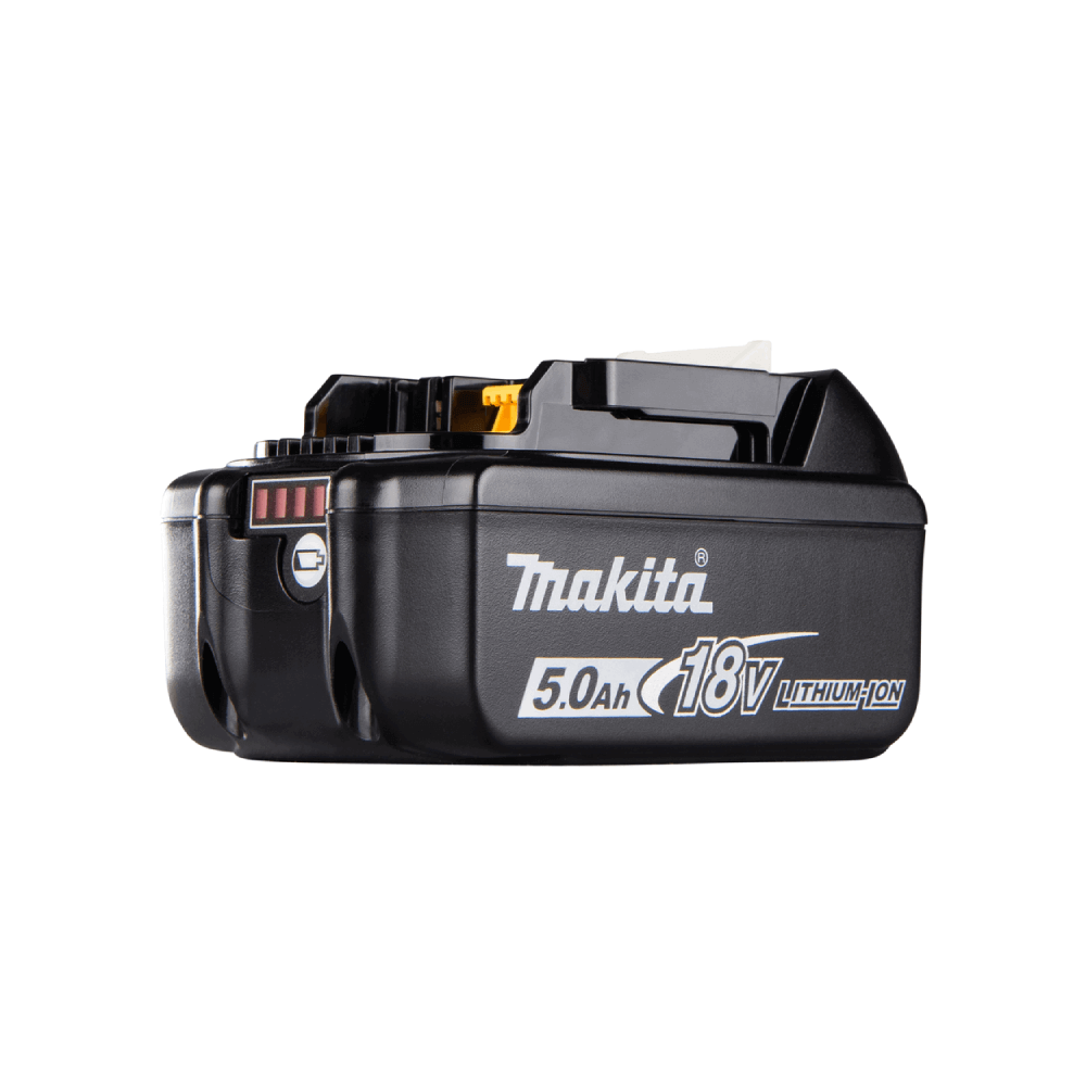 Batteria agli ioni di litio con capacità di 5,0 Ah e indicatore del livello di carica. Batteria potente per uso generale per utensili Makita LXT® da 18V.